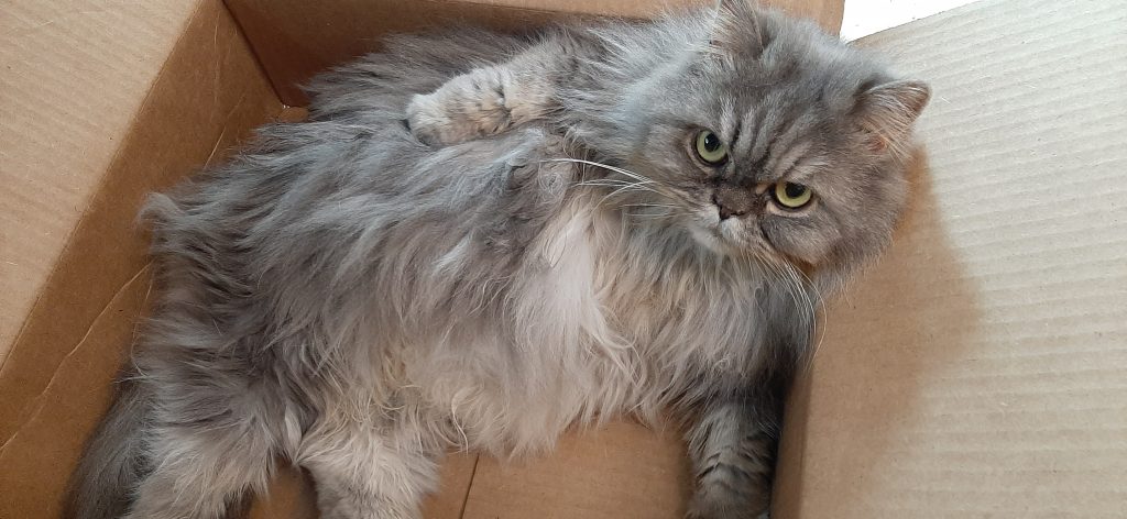 That’s Percy, my cat, in her new box. She likes to be photographed and included in all things I do. Thus, she is included on this new web page. The reason she looks threatening is that she is warning me to stay away from her new box. It is hers…. let’s be clear on that.