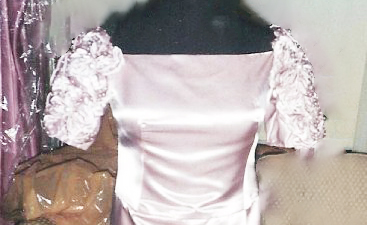 This gown was gorgesous on the customer. It really is too bad, I don’t have a proper photograph. The customer wanted a slim fitting satin gown with a beautiful sleeve treatment. The base sleeve is a simple short sleeve. We then cut out and stitched, (I forget how many flower petals) out of the satin. Every petal was then hand beaded.