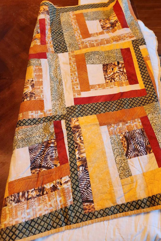 I made two of these similar, coordinating quilts with animal prints. THe theme of thier room was Circus. I used their colors and was able to capture a mix of the rooms theme and animal prints.