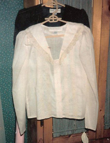 Clearly most of these Photos come from my Sailor Dress period. I created the original, then bumped it into a jacket, a blouse, and the version in the Red Plaid Challis, has a back hem that served as a train. You can see in the photo, the back hem hangs lower then the front. You can also see it had evolved to having a waistband with a front placket of buttons.