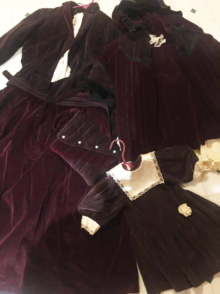 This is a Collection for a Mother and two Daughters. It includes two Girl dresses and a Jacket, Skirt and Handbag for Mom.
